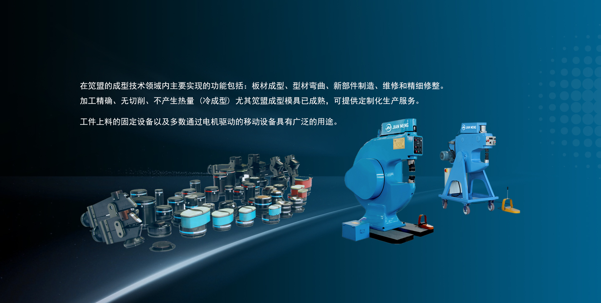 公司主要生產制造:PF350異形曲面快速成形機,PF665雅高成型機,收邊機,放邊機,校形機,鈑金整形機,球面成形機,高速成型機,金屬整平機等設備